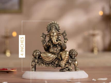 Brass Ganesh Idol Virajman On Sinhasan (4 Inch)