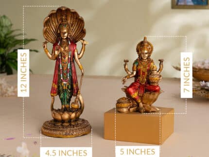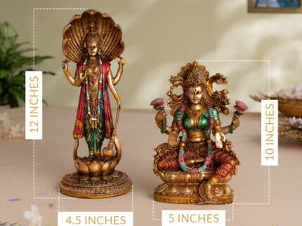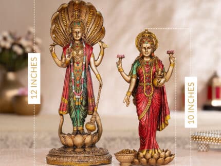 Lord Vishnu Standing Antique Idol (12 Inch) with Goddess Lakshmi Antique Idol (7 Inch) – Combo
