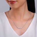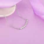 The Inspiration: The vivid blooms on a verdant landscape are a true beauty to behold. This necklace is just like that and waiting to be yours. The Design: This silver necklace features a row of floral motifs set with zircons. 925 Silver Perfect for sensitive skin Length of Chain: 43 cm + 5 cm Adjustable Motif Height: 0.7 cm, Width: 2.9 cm Comes with the Nikrish Jewellery kit and authenticity certificate Content: Necklace Net Qty- 1 unit Styling Tip: Pair this necklace with a lilac wrap dress.