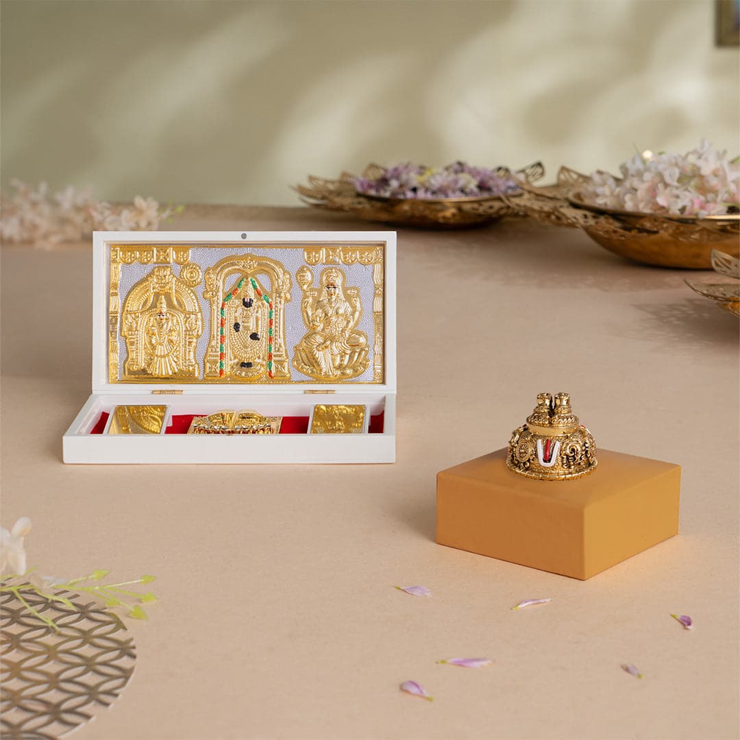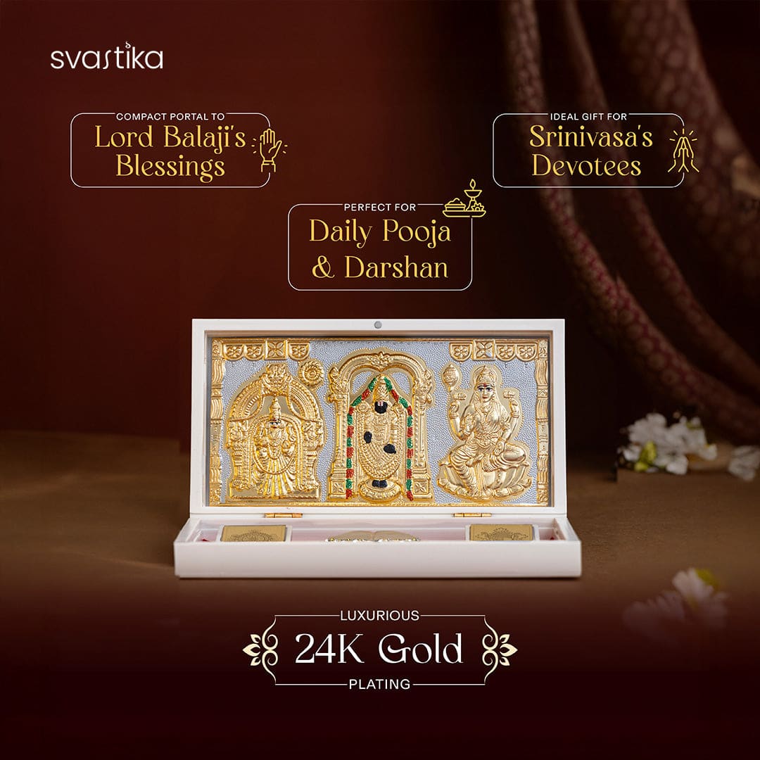 Balaji Charan with Shanku Chakra Namam – Gold Plated (2 Inch) with Balaji Pocket Temple – Gold Plated (Small) – Combo