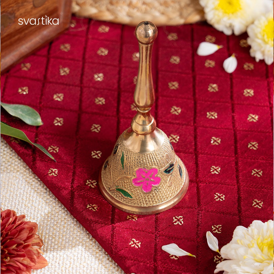 Immerse in traditional Indian rituals with our exquisite Designer Meenakari Brass Pooja Thali Set. This curated set includes meticulously crafted flower motif items plated in shimmering gold to elevate your worship experience. 10 Inch Floral Thali: The elegant centerpiece with intricate floral patterns and ample space for sacred offerings. Floral Kalash: Symbolizing purity and abundance, this ornate kalash with floral motifs invites positive energy. Floral Diya: Illuminate your space with the mesmerizing glow of this floral diya, creating serenity and devotion. Floral Ghanti: Invoke blessings with the melodious chimes of this exquisite floral bell. Floral Agarbatti Holder: Engulf surroundings in fragrance with this ornate floral incense holder. Floral Prasad Box: Share divine offerings elegantly from this enchanting floral prasad box. Experience divine Indian heritage with our Floral Design Pooja Aarti Thali Set. Perfect for special occasions, daily worship or gifting . Order now and elevate your spiritual journey with floral radiance, prosperity and bliss. Package Includes : Thali Diya Agarbatti Holder Ghanti Prasad Box Kalash