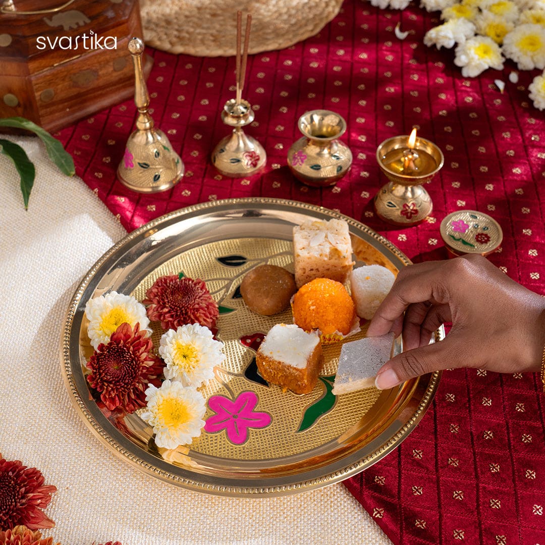 Brass Designer Meenakari Pooja Thali (10 Inch)