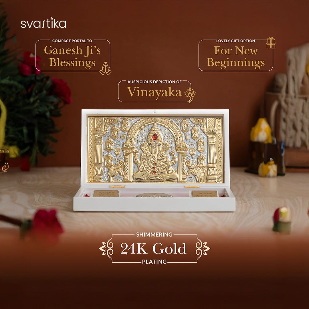 Invoke divine blessings with this Ganesh Shankh & Svastika Ganesha Pocket Temple Combo , a perfect addition to your pooja rituals and spiritual decor. 🔹 Ganesh Shankh (Silver-Plated, 5 Inches): This beautifully handcrafted Ganesh-engraved conch symbolizes prosperity and divine energy. Ideal for pooja ceremonies, Aarti, and home decor , this sacred shankh enhances positive vibrations. 🔹 Svastika Ganesha Pocket Temple (Gold & Silver-Plated, 8.2 Inches): A portable divine shrine , this intricately designed Ganesh temple is perfect for carrying blessings wherever you go. It serves as an auspicious gift for housewarming, weddings, and festivals. This spiritual combo brings harmony, success, and devotion into your space, making it an excellent choice for personal use or gifting.