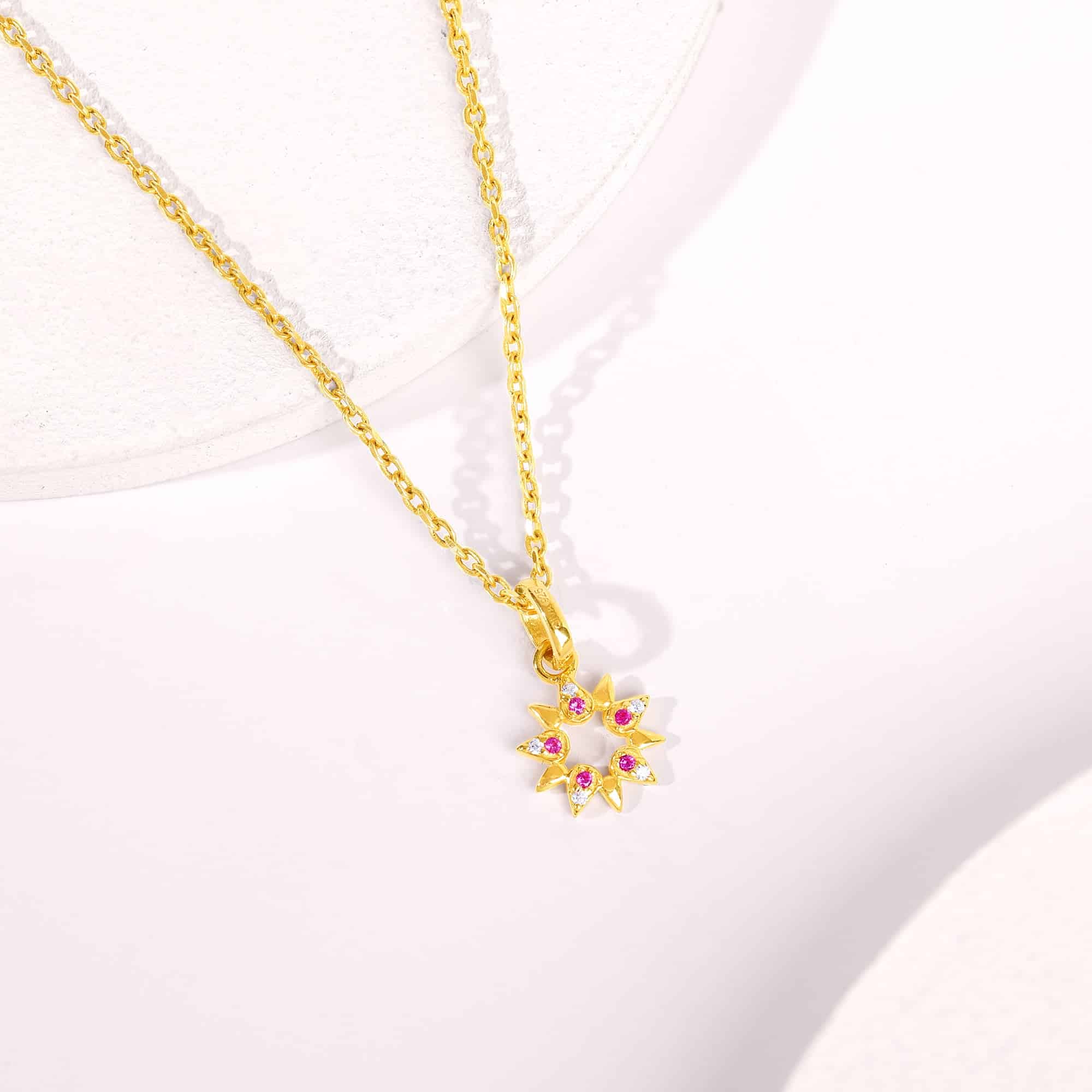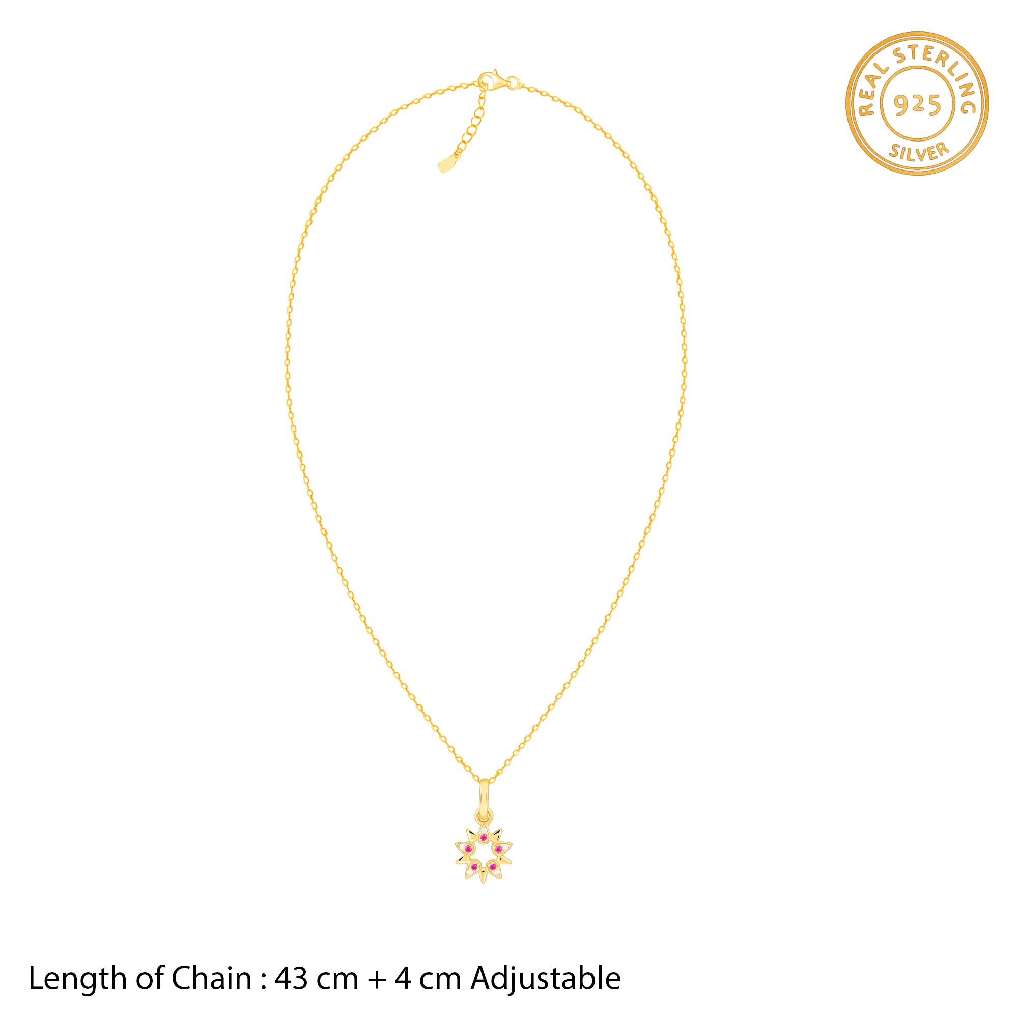 The Inspiration: A flower that never fades, just like your forever love. This pendant will stay close to her heart, always. The Design: This gold plated pendant for women features a floral motif. The petals alternate between plain and ones studded with zircon and coloured zircon. The pendant comes with a link chain. 925 Silver With Gold Plating Perfect for sensitive skin Motif Height: 1.6 cm, Motif Width: 0.9 cm Length of Chain: 43 cm + 4 cm Adjustable Comes with the Nikrish Jewellery kit and authenticity certificate Content: Pendant With Link Chain Net Qty- 1 unit Styling Tip: Match with dangler earrings for party-ready glam.