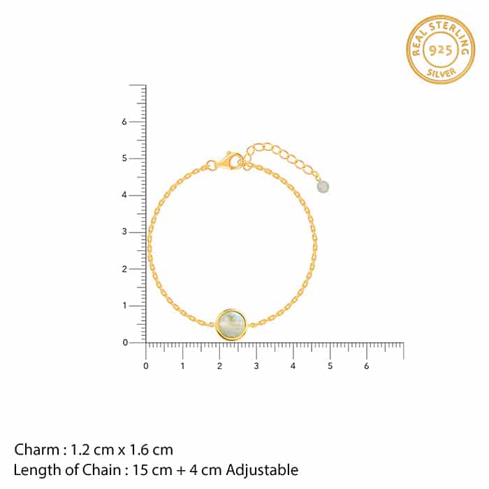The Inspiration: A golden bracelet is the perfect gift for someone who fills your heart with love. The Design: This golden bracelet for women features a circle motif with coloured stone, that has a mechanism to rotate. 925 Silver with Gold Plating Perfect for sensitive skin Motif Size: Height – 1.2 cm, Width – 1.6 cm Length of Chain: 15 cm + 4 cm Adjustable Comes with the Nikrish Jewellery kit and authenticity certificate Content: Bracelet Net Qty- 1 unit Styling Tip: Pair this golden bracelet with a half-sleeved dress.