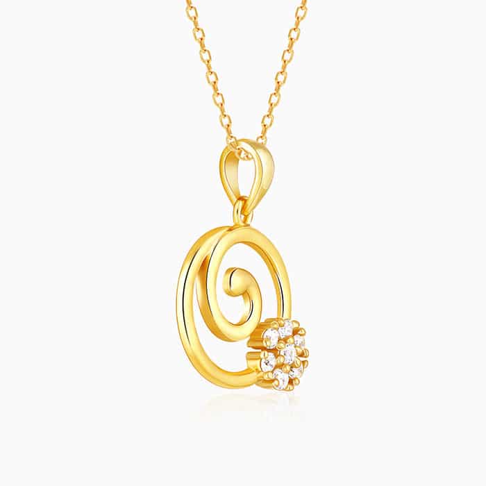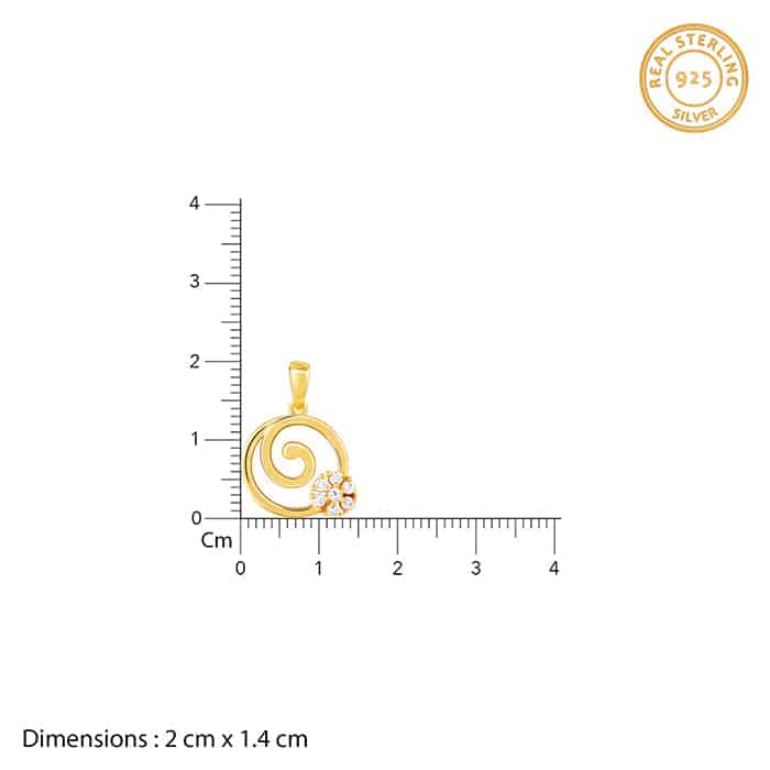 The Inspiration: The Golden Spiral Keepsake Pendant With Link Chain draws from nature’s perfect symmetry and celebrates the harmony found in the spirals of galaxies. The Design: This golden pendant features a golden spiral adorned with a dazzling zircon flower. 925 Silver With Gold Plating Perfect for sensitive skin The pendant size is 43 cm and the adjustable chain is 5 cm Motif Height: 2 cm, Width: 1.4 cm Comes with the Nikrish Jewellery kit and authenticity certificate Content:Â P endant Net Qty- 1 unit Styling Tip: Pair this pendant with a V-neckline and let it take you centre stage!