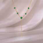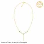 The Inspiration: From date nights to board meetings, this necklace is perfect to amplify your vibe and make you slay. The Design: This golden necklace showcases a stylish Y-shaped chain with a square motif, featuring a vibrant green-coloured stone and a sparkling zircon delicately dangling below. 925 Silver with Gold Plating Perfect for sensitive skin Length of chain: 43 cm + 6 cm Adjustable Comes with the Nikrish Jewellery kit and authenticity certificate Content: Necklace Net Qty- 1 unit Styling Tip: Wear this with a white bodycon dress.
