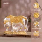 Kamdhenu Cow with Calf Idol – Gold & Silver Plated (5 Inch) with Maa Lakshmi’s Charan Paduka on Elegant Base – Gold & Silver Plated – Combo