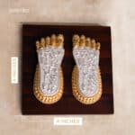 Imagine the arrival of Lakshmi Maa , whose gentle presence fills your home with blessings of wealth, peace, and abundance. Inspired by the sacredness of the Goddess’s feet, this Lakshmi Charan invites her divine grace, making your space a pathway for prosperity and new beginnings. Crafted with fine detail, this timeless piece of spiritual art radiates elegance with its luxurious 24k gold plating and 999 high-grade silver finish. Adorned with delicate gold-plated anklets, each element reflects the skilled artistry that brings out the sacred beauty of Maa Lakshmi’s blessings. With a versatile size perfect for various placements, this Lakshmi Charan Paduka brings a touch of divinity to every corner. Whether it graces your pooja room, is kept in tijoris for good fortune, or rests on an office desk, goddess Lakshmi feet fills any space with an aura of peace and wealth. Ideal for festive occasions or as a meaningful return gift during weddings, this laxmi charan paduka is more than an ornament—it’s a heartfelt invitation for blessings to flow. Feel the sacred presence of Maa Laxmi feet in your home and let her grace bring you prosperity, joy, and spiritual fulfillment.