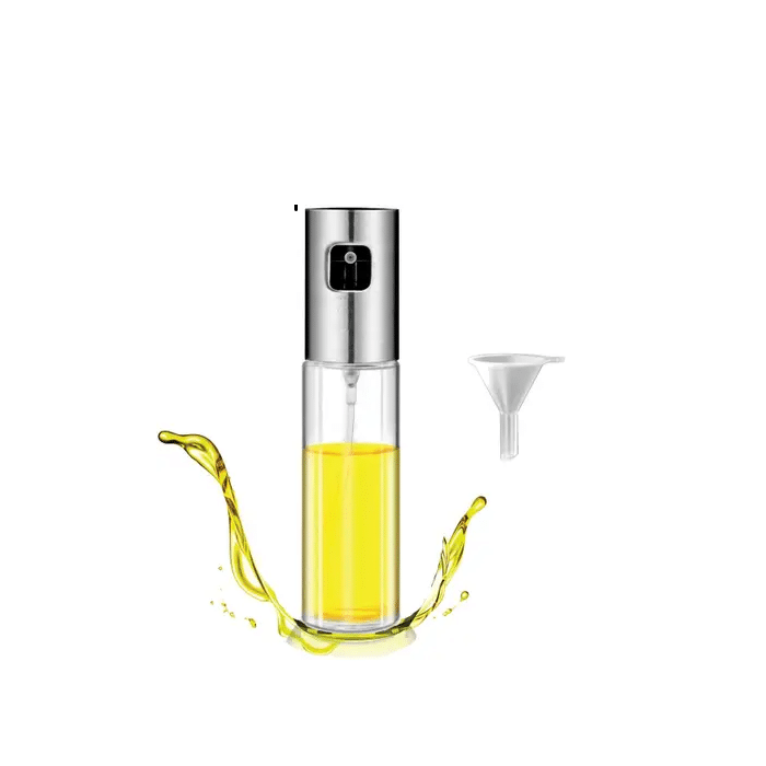 - ćLightweight & practical the lightweight design of our oil sprayer bottle, combined with the non-slip design of the top push button and the bottom of the bottle, allows you to use it by one hand and carry it anywhere easily even it is a full capacity of 100ml. Its nozzle has been specially designed so that it can maintain less oil leakage and no clogging after prolonged pressing use. In addition, the sprayer set contains a beautiful small funnel to help you easily refill the oil into the bottle.