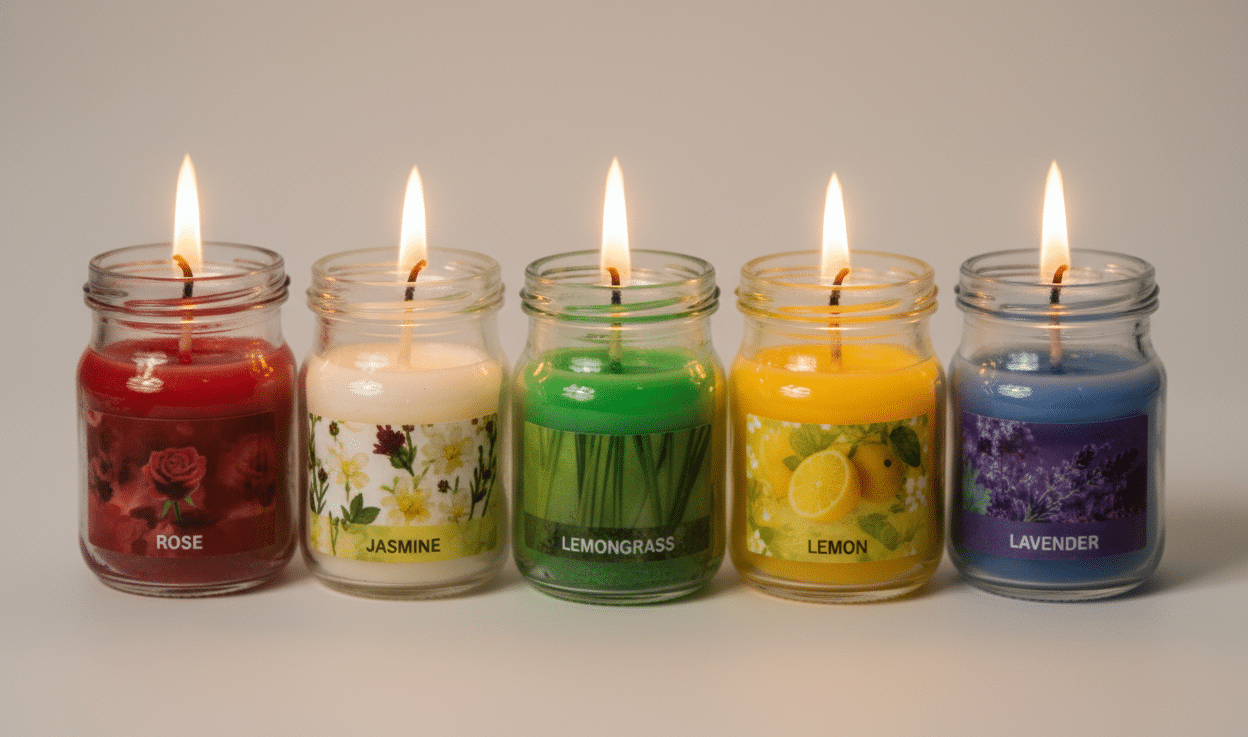 Nikrish Gifting Jasmine & Lemon & Rose & Lemon Grass & Lavender Scented Jar Candles Candle