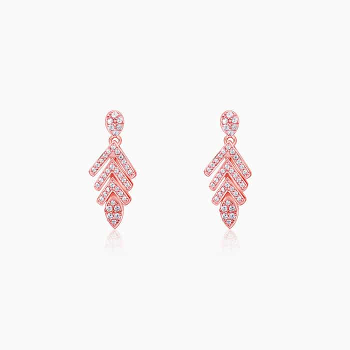 The Inspiration: Sometimes, it’s the smallest sparkle that gives us the biggest confidence boost. You owe that to yourself. The Design: These rose gold plated earrings for women feature a chevron pattern design, studded with zircons. 925 Silver with Rose Gold Plating Perfect for sensitive skin Earring Size: Height – 2.3 cm, Width – 0.9 cm Comes with the Nikrish Jewellery kit and authenticity certificate Content: Earrings Net Qty- 1 pair Styling Tip: Pair these with a rose gold plated necklace.