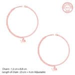 The Inspiration: A swarm of butterflies does warm your heart. This Butterfly Flutter anklet motivates you to soar higher and fly your way. The Design: This rose gold anklet has three butterfly motifs in a vertical, one studded with zircons(check) 925 Silver with Rose Gold plating Perfect for sensitive skin Length of Chain: 23 cm + 4 cm Adjustable Motif Height: 1.2 cm, Width: 0.8 cm Comes with the Nikrish Jewellery kit and authenticity certificate Content: Anklet Net Qty- 1 unit Styling Tip: Team it with a denim capri.