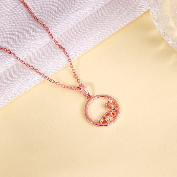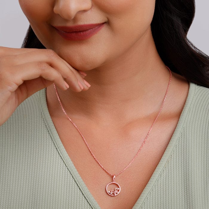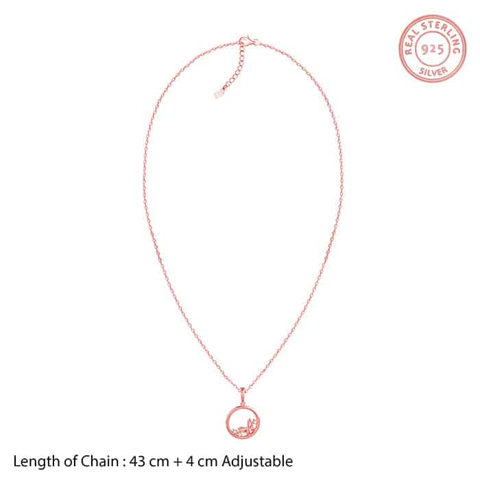 The Inspiration: Not just a pendant, it’s your personal metamorphosis. From chill days to glam nights—it flies with you. The Design: This rose gold plated pendant for women features a circular frame set with sparkling zircons and a butterfly motif. 925 Silver with Rose Gold Plating Perfect for sensitive skin Motif Height: 2.2 cm, Motif Width: 1.5 cm Length of Chain: 43 cm + 4 cm Adjustable Comes with the Nikrish Jewellery kit and authenticity certificate Content: Pendant with Link Chain Net Qty- 1 unit Styling Tip: Pair this with a rose gold butterfly bracelet.
