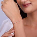 The Inspiration: When you appreciate the colours of life, make this bracelet your go-to companion. This would be an ideal choice of wear that makes your day happy and in full spirits. The Design: This rose gold tennis bracelet is studded with multicolour stones. 925 Silver With Rose Gold Plating Perfect for sensitive skin Length of chain: 15 cm + 4 cm Adjustable Comes with the Nikrish Jewellery kit and authenticity certificate Content: Bracelet Net Qty- 1 unit Styling Tip: Style this with a white outfit.