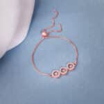 The Inspiration: As bold as your Monday hustle. Crafted for women who mean business. This bracelet doesn’t just complete your outfit – it completes your mood. The Design: This rose gold bracelet for women features three zircon-studded circles. Each circle has a zircon set at the centre. 925 Silver with Rose Gold Plating Perfect for sensitive skin Charm: 0.8 cm x 3 cm Length of Chain: 5 cm + Adjustable Comes with the Nikrish Jewellery kit and authenticity certificate Content: Bracelet Net Qty- 1 unit Styling Tip: Pair this with a matching necklace.