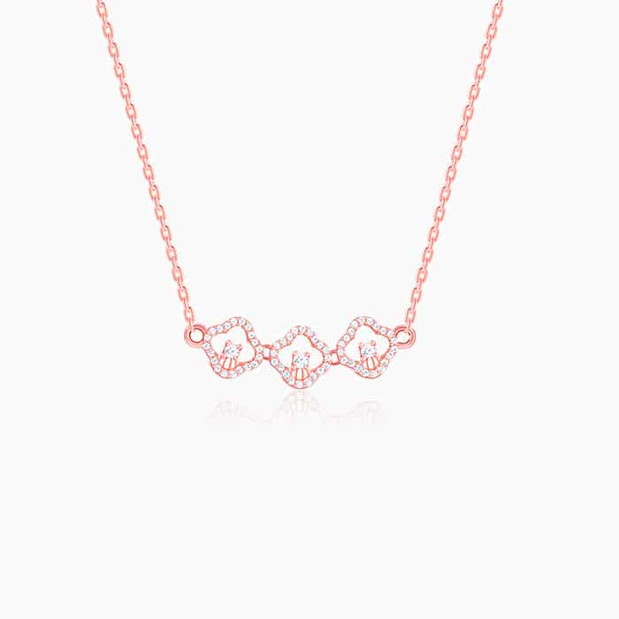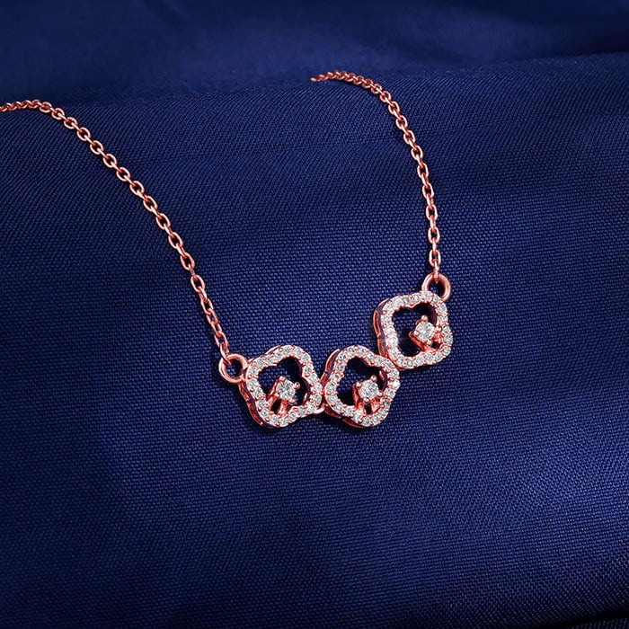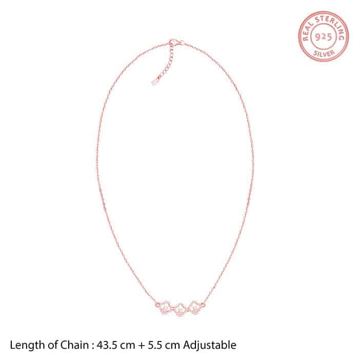The Inspiration: For the woman who walks in like she owns the place. Bold links, bold energy. This necklace doesn’t play small, and neither do you. The Design: This rose gold plated necklace for women features three zircon-studded quatrefoil frames. Each frame has a zircon set at the centre. 925 Silver with Rose Gold Plating Perfect for sensitive skin Motif Height: 3.3 cm, Motif Width: 0.9 cm Length of Chain: 43.5 cm + 5.5 cm Adjustable Comes with the Nikrish Jewellery kit and authenticity certificate Content: Necklace Net Qty- 1 unit Styling Tip: Pair this with a matching bracelet.