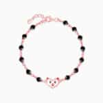 The Inspiration: Wrapped around her wrist like a tiny wish. This nazariya bracelet is made to watch over her world of giggles and dreams. The Design: This rose gold kids bracelet features a Nikrish mascot at the centre. The enamel-coated mascot pairs beautifully with black beads on the chain. 925 Silver with Rose Gold Plating Perfect for kids’ sensitive skin Charm: 0.8 cm x 1.3 cm Length of chain: 11 cm + 3 cm Adjustable Comes with the Nikrish Jewellery kit and authenticity certificate Content: Bracelet Net Qty- 1 unit Styling Tip: Pair this with your kid’s adorable outfit.