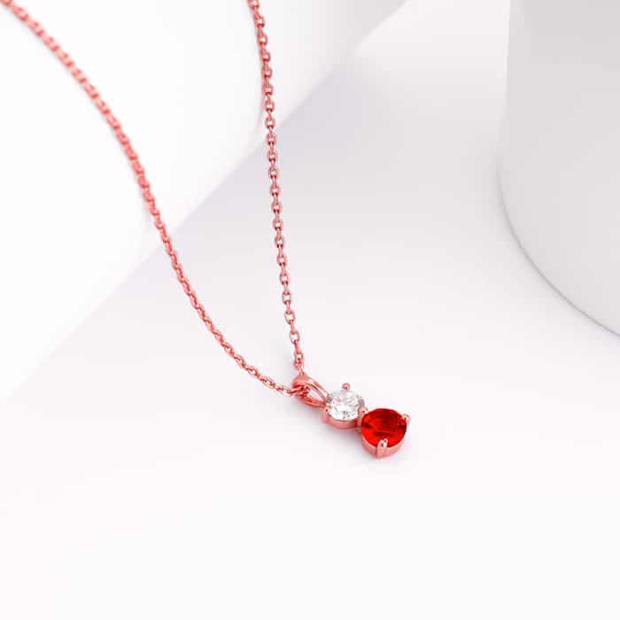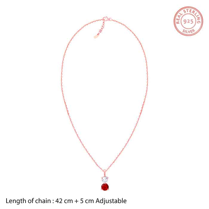 The Inspiration: Gift the Rose Gold Dual Scarlet Pendant, a meaningful token that encapsulates the enduring bond you share with your loved one. The Design: This rose gold pendant features two circles connected. The central circle has a red-coloured stone, while the other one has a zircon. Celebrate your moments of passion with Nikrish’s Red Romance Collection. 925 Silver with Rose Gold Plating Perfect for sensitive skin Length of chain: 42 cm + 5 cm Adjustable Motif Height: 1.7 cm, Width: 0.7 cm Comes with the Nikrish Jewellery kit and authenticity certificate Content: Pendant With Link Chain Net Qty- 1 unit Styling Tip: Style this pendant with a bodycon dress.