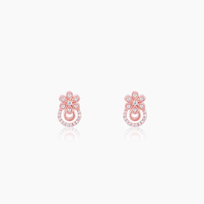 The Inspiration: Step into blooming elegance with our exquisite Floral Arch Earrings. These make you shine with grace like a flower in full bloom. The Design: These rose gold earrings have a floral motif studded with zircons on two arches – at the bottom, the flower design is accompanied by a plain inner ring. 925 Silver with Rose Gold Plating Perfect for sensitive skin Earring Size: Height – 1.5 cm, Width -1 cm Comes with the Nikrish Jewellery kit and authenticity certificate Content: Earrings Net Qty- 1 pair Styling Tip: Pair these with an anarkali suit.