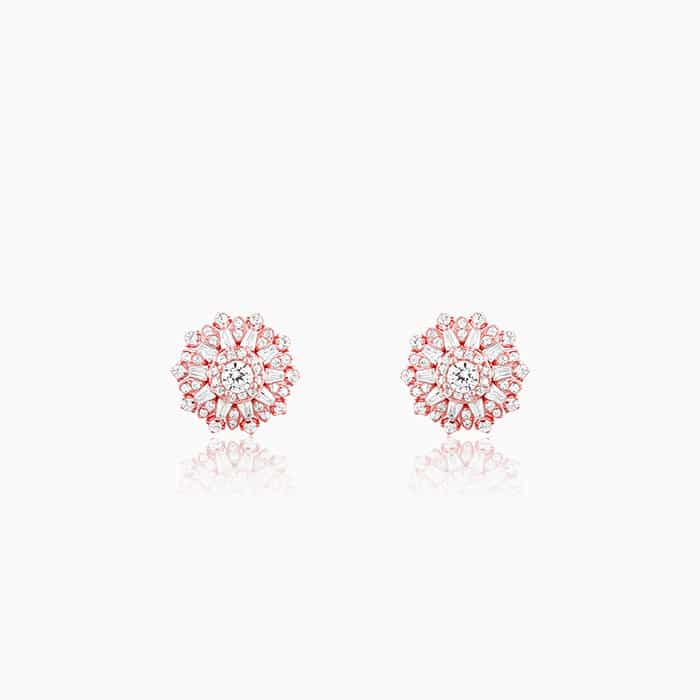 The Inspiration: We have a flower which will never wither and make you look graceful every time you wear it. The Design: These rose gold earrings feature a flower motif studded with zircons. 925 Silver with Rose Gold Plating Perfect for sensitive skin Earring Size: Height – 1.3 cm, Width – 1.3 cm Comes with the Nikrish Jewellery kit and authenticity certificate Content: Earrings Net Qty- 1 pair Styling Tip: Style these with a mini dress.