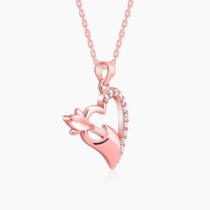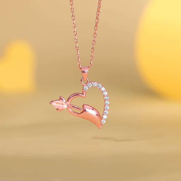 The Inspiration: Give a gift that holds meaning, A pendant that’s not just jewellery but a keepsake of your most treasured bond. The Design: This rose gold pendant with a link chain for women features a heart design partially studded with zircons and an arrow at the centre holding a coloured stone. Fall in love all over again with our exclusive Valentine’s Collection: #WhatTheHeartWants. Here are our curated designs that will speak to your heart. 925 Silver with Rose Gold Plated Perfect for sensitive skin Motif Height: 2.36 cm, Motif Width: 2.16 cm Length of Chain: 43 cm + 4 cm Adjustable Comes with the Nikrish Jewellery kit and authenticity certificate Content: Pendant with Link Chain Net Qty- 1 unit Styling Tip: Style this with a bodycon dress.
