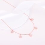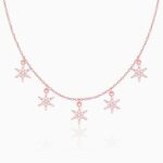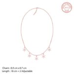 The Inspiration: The Rose Gold Frost Charm Necklace is inspired by the balanced love brings to life. The Design: The delicate necklace is rose gold in colour with five small frost charms 925 Silver with Rose Gold Plating AAA+ Quality Zircons Pendant Dimensions: 0.9 cm x 0.7 cm The length of the necklace is 18 cm with a 2 cm adjustable portion Hypoallergenic – Perfect for sensitive skin Comes with the Nikrish Jewellery kit and authenticity certificate Net Qty- 1 piece Styling Tip: Pair this with any casual peach t-shirt.