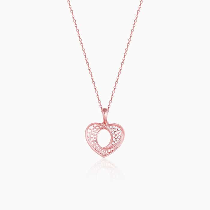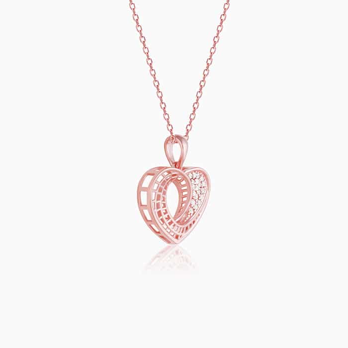 The Inspiration: The Rose Gold Meandering Love Lane Pendant is inspired by the twists and turns you face in the journey of life and love alike! The Design: The Rose Gold Meandering Love Lane Pendant comes in an exquisite heart design with one half of the heart studded with zircons and the other half in a cage-like silhouette. Includes 16″ + 2″ adjustable Rose Gold Chain 925 Silver with Rose Gold plating Dimensions: 28 mm x 21 mm Comes with the Nikrish Jewellery kit and authenticity certificate Styling Tips: Go for a red satin gown and let this pendant add the right amount of dazzle to your look. Shipping & Returns : Free express shipping 30 day returns