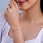 The Inspiration: Whether you’re looking for a bold statement piece or a delicate everyday accessory, we’ve got you! This rose gold bracelet is your perfect match! The Design: This rose gold bracelet features an infinity motif. It’s surrounded by flowers studded with zircons with square & circular motifs. 925 Silver with Rose Gold Plating Perfect for sensitive skin Length of Chain: 15 cm + 4.5 cm Adjustable Comes with the Nikrish Jewellery kit and authenticity certificate Content: Bracelet Net Qty- 1 unit Styling Tip: Pair this with a jumpsuit.