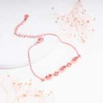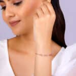 The Inspiration: The Rose Gold Interlocked Bracelet is inspired by the bond we share with our partner that inspires us to be our best selves. The Design: This rose gold bracelet is interconnected with one another where the alternate element is studded with zircons. 925 Silver with Rose Gold plating AAA+ Quality Zircons The length of the bracelet is 15 cm with a 4 cm adjustable portion Charm Dimensions: 0.6 cm x 4.9 cm Hypoallergenic – Perfect for sensitive skin Comes with the Nikrish Jewellery kit and authenticity certificate Net Qty- 1 piece Styling Tip: Style this bracelet with a peach blazer dress.