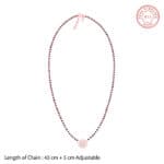 The Inspiration: This mangalsutra was crafted with a deep understanding of the emotions that accompany the sacred piece of jewellery a woman wears after her wedding. The Design: This rose gold mangalsutra has a gorgeous round charms studded with zircons, and the chain is embellished with black beads. 925 Silver with Rose Gold Plating Perfect for sensitive skin Length of chain: 43 cm + 5 cm adjustable Motif Height: 1.4 cm, Width: 1.5 cm Comes with the Nikrish Jewellery kit and authenticity certificate Content: Necklace Net Qty- 1 unit Styling Tip: Wear this with a saffron saree.