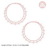 The Inspiration: Make a statement with this layered anklet, perfect for your party wear. Get yours today and elevate your look for that upcoming wedding. The Design: This rose gold anklet features a dual-layer design with zircons dangling. 925 Silver with Rose Gold Plating Perfect for sensitive skin Length of Chain: 25 cm + 5 cm Adjustable Comes with the Nikrish Jewellery kit and authenticity certificate Content: Anklet Net Qty- 1 unit Styling Tip: Style this with an A-line dress.