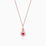 The Inspiration: The Rose Gold Light of My Life Pendant with Link Chain is inspired by the love that guides us throughout our romantic journey in our life. The Design: The rose gold pendant features a bulb design studded with zircons and a red heart at the centre. 925 Silver with Rose gold Plating AAA+ Quality Zircons Pendant Dimensions: 2 cm x 1 cm The length of the necklace is 43 cm with a 4 cm adjustable portion Hypoallergenic – Perfect for sensitive skin Comes with the Nikrish Jewellery kit and authenticity certificate Net Qty- 1 piece Styling Tip: Style this with a black turtle neck and plaid white and black skirt that has a slit.