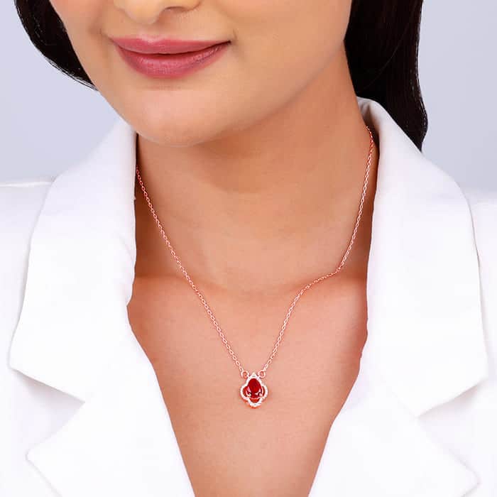 The Inspiration: You can express your love in different ways and this necklace serves just the purpose. Try something new this time and make her moment special in your unique way. The Design: This rose gold necklace features a flower motif with a red-colored stone at the center and zircons studded around. Celebrate your moments of passion with Nikrish’s Red Romance Collection. 925 Silver with Rose Gold Plating Perfect for sensitive skin Length of Chain: 44 cm + 6 cm Adjustable Motif Height: 1.6 cm, Width: 1.2 cm Comes with the Nikrish Jewellery kit and authenticity certificate Content: Necklace Net Qty- 1 unit Styling Tip: Style this necklace with your everyday look.