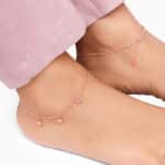 The Inspiration: The star charms intricately intertwined with one another, symbolises the unity, harmony and interconnectedness of the universe. An ideal choice for gifting for yourself or others. The Design: This rose gold anklet has star motifs that appear like merging with each other. 925 Silver with Rose Gold Plating Perfect for sensitive skin Length of Chain: 25 cm + 4 cm Adjustable Motif Height: 0.8 cm, Width: 0.7 cm Comes with the Nikrish Jewellery kit and authenticity certificate Content: Anklet Net Qty- Single or pair, as chosen by you! Styling Tip: Pair it with palazzo style pants.