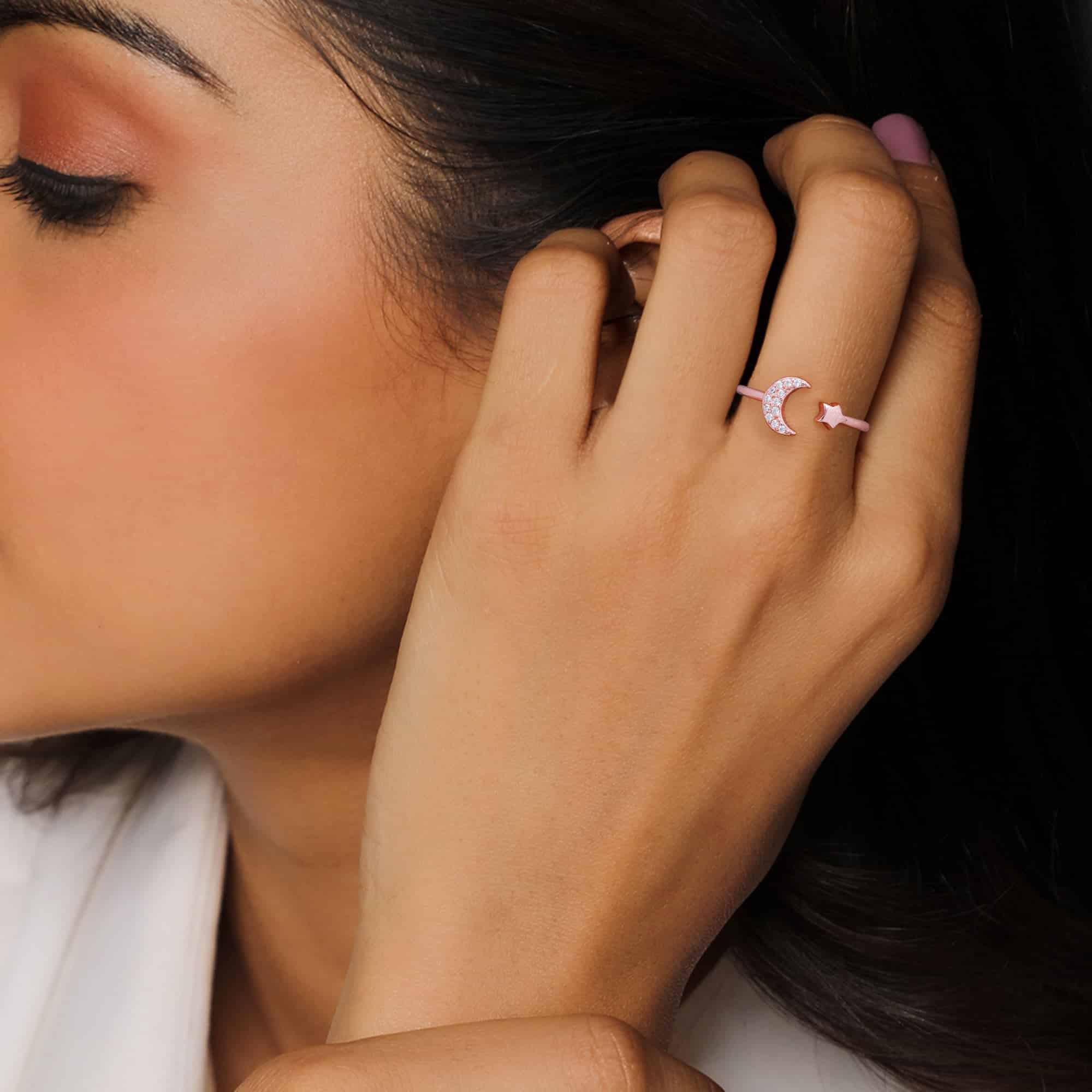 Rose Gold Moon-Star Constellation Ring