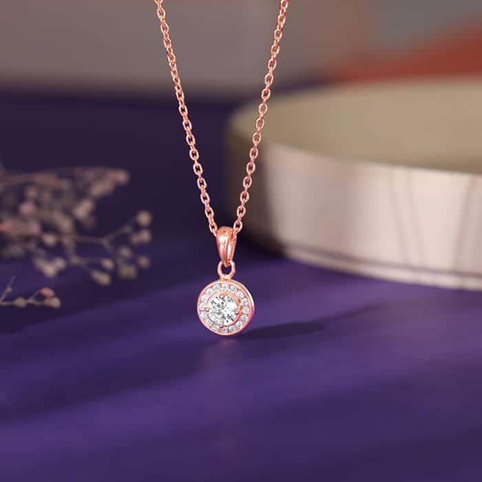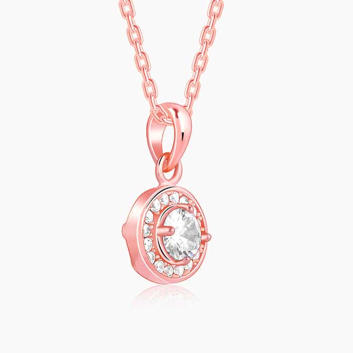 The Inspiration: Whether you’re attending a gala, a wedding, or a corporate event, wear this pendant to make a lasting impression. The Design: This rose gold pendant with a link chain features one zircon surrounded by others. 925 Silver with Rose Gold Plating Perfect for sensitive skin Motif Height: 1.77 cm, Motif Width: 0.93 cm Length of Chain: 43 cm + 4 cm Adjustable Comes with the Nikrish Jewellery kit and authenticity certificate Content: Pendant with Link Chain Net Qty- 1 unit Styling Tip: Wear these with your outfit of choice.
