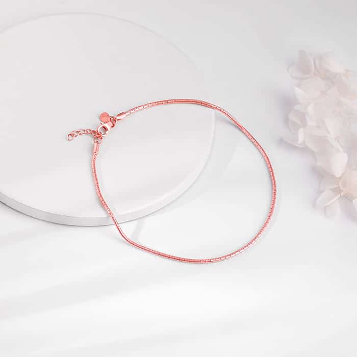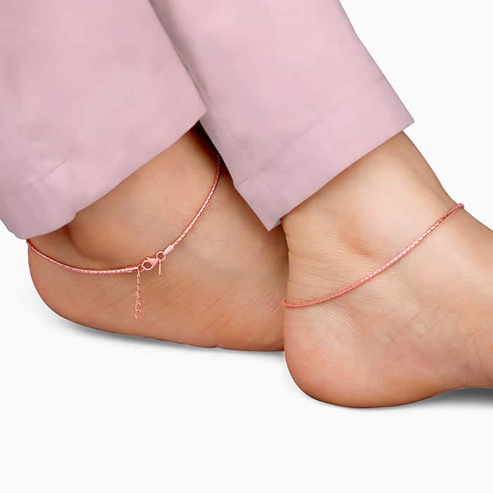 The Inspiration: Did you know that an anklet is one of the best pieces of jewellery to gift a girl? It accentuates her beauty and makes her even more gorgeous. The Design: This rose gold anklet has a snake chain design. 925 Silver with Rose Gold Plating Perfect for sensitive skin Thickness: 0.16 Length of the anklet: 24 cm + 2 cm Adjustable Comes with the Nikrish Jewellery kit and authenticity certificate Content: Anklet Net Qty- 1 unit Styling Tip: Style this with a pink dress.