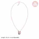 The Inspiration: The Rose Gold Panda Heart Me Necklace is inspired by the cuteness and sweetness of a panda. The Design: This rose gold pendant features a cute panda carrying two zircon studded hearts. 925 Silver with Rose Gold Plating AAA+ Quality Zircons Pendant Dimensions: 2.1 cm x 1.8 cm The length of the necklace is 43 cm with a 4 cm adjustable portion Hypoallergenic – Perfect for sensitive skin Comes with the Nikrish Jewellery kit and authenticity certificate Net Qty- 1 piece Styling Tip: Style this with a flared peach dress.