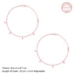 The Inspiration: Be a wanderlust in the company of pole stars that will guide you throughout your journey. This anklet will be the best send off present for your friend. The Design: This rose gold anklet has pole star motifs alternating with beads. 925 Silver Rose Gold Plating Perfect for sensitive skin Length of Chain: 23 cm + 4 cm Adjustable Motif Height: 0.6 cm, Width: 0.7 cm Comes with the Nikrish Jewellery kit and authenticity certificate Content: Anklet Net Qty- Single or pair, as chosen by you! Styling Tip: Cargo style pants would go well with these anklets.