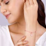 The Inspiration: The Rose Gold Rain-love-on-your-Deer Bracelet is inspired by the love that we like to shower on our dear ones; an overwhelming feeling. The Design: The rose gold bracelet has a reindeer charm studded with zircons which are dangling from its antlers. 925 silver with Rose Gold plating Perfect for sensitive skin Adjustable size AAA+ Quality Zircons Charm: 1.4 cm x 0.8 cm Diameter of the bracelet is 16 cm and the adjustable chain is 3 cm. Comes with the Nikrish Jewellery kit and authenticity certificate Net Qty- 1 piece Styling Tip: Style this with a printed maroon top and blue jeans.
