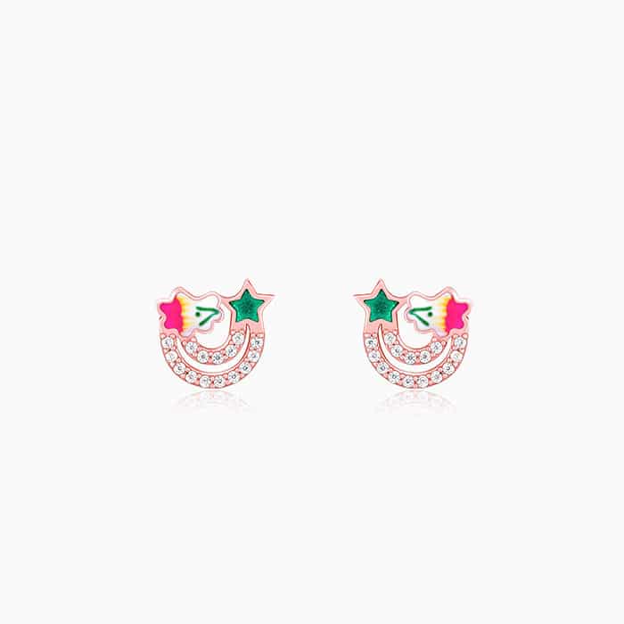 The Inspiration: Indulge in the beauty of the rainbow with these enchanting earrings that are as unique and captivating as you are. The Design: These rose gold earrings feature a star motif with enamel. Above the star, there is a rainbow studded with zircon, and on the other end, it is attached to a cloud also embellished with enamel. 925 Silver with Rose Gold Plating Perfect for sensitive skin Earring Size: Height – 1 cm, Width – 1.2 cm Comes with the Nikrish Jewellery kit and authenticity certificate Content: Earrings Net Qty- 1 pair Styling Tip: Style these earrings with a bodycon dress.