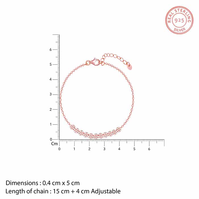 Inspiration: A bit shiny, a bit edgy – doesn’t that make for a perfectly balanced glam look? This Rose Gold Shimmer Beads Bracelet is a balanced piece. Design: This Rose Gold Shimmer Beads Bracelet is handcrafted with love, just for YOU. Each bead is intricately studded with the zircons. The perfect glam look. Style: For all those glam days, this is a perfect pick. AAA+ Quality Zircons Sterling silver and 18K Rose Gold plating Hypoallergenic – Perfect for sensitive skin Chain – 16cm+3cm (Adjustable size), Charm – 45mm Comes with the Nikrish Jewellery kit and authenticity certificate Shipping & Returns : Free express shipping 30 day returns