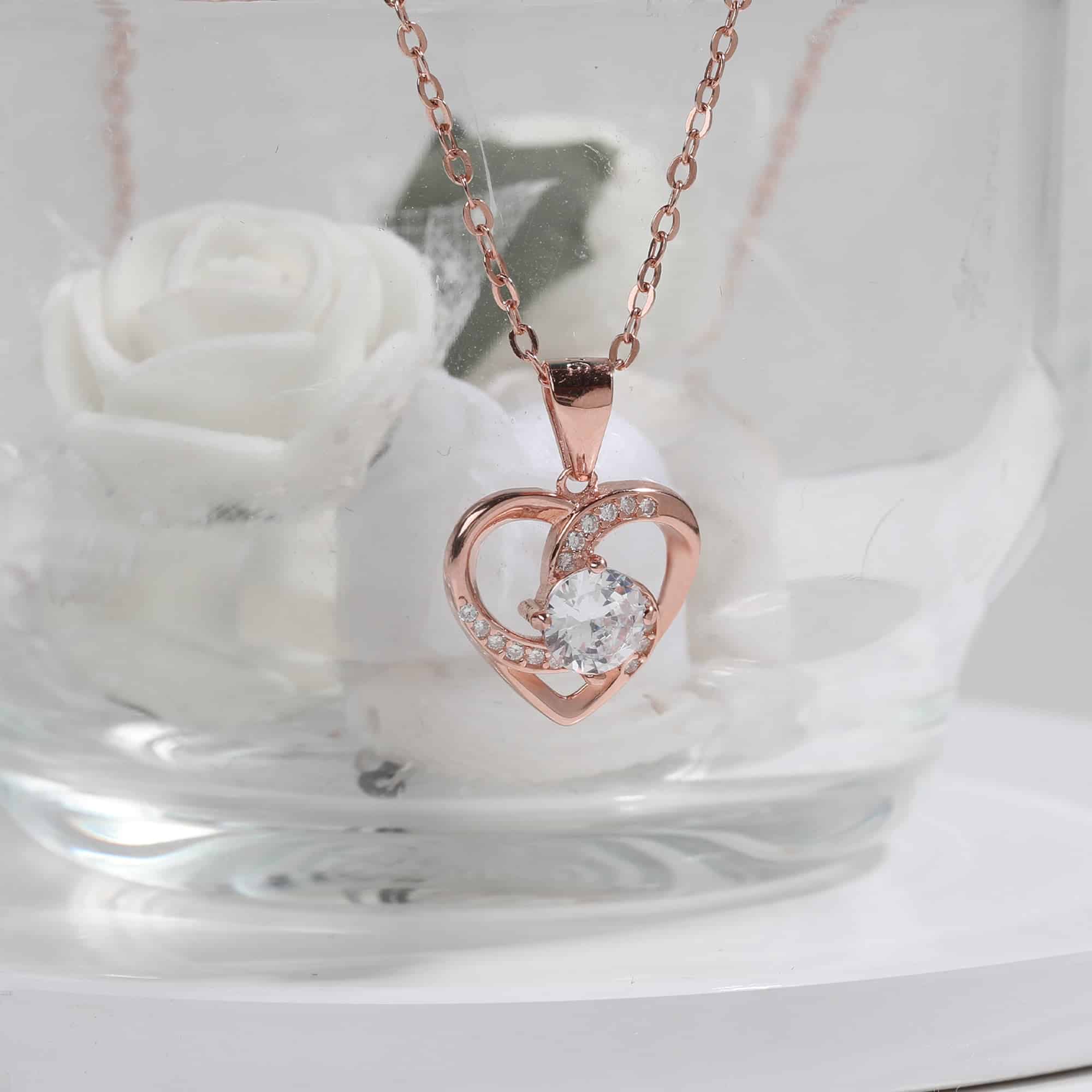 The Inspiration: DIVA, we know we say this often, but YOU really have a way of capturing everyone’s attention. YOU enchant the world with your hypnotic charm. Inspired by the gorgeous YOU who leaves the world spellbound, comes this Rose Gold Swirl Pendant! The Design: This Rose Gold Swirl Pendant is handcrafted with love, just for YOU! A sparkling zircon is surrounded by an enchanting rose gold swirl, sending all those who view it into a trance. All this nestled in a heart, a perfect finishing touch. The Styling: This pendant is all YOU need to captivate! Perfect for that party YOU have planned. Includes 38cm + 5cm adjustable Rose Gold Chain 925 Sterling Silver with Rose Gold plating AAA+ Quality Zircons Comes with the Nikrish Jewellery kit and authenticity certificate