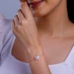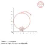 The Inspiration: Treat yourself to a shopping extravaganza! This is the perfect piece to glam up your everyday look. The Design: This rose gold bracelet features a snowflake motif with zircons. 925 Silver with Rose Gold Plating Perfect for sensitive skin Charm: 1.5 cm x 1.8 cm Length of Chain: 15 cm + 4 cm Adjustable Comes with the Nikrish Jewellery kit and authenticity certificate Content: Bracelet Net Qty- 1 unit Styling Tip: Pair this with a blue midi dress.