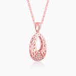 The Inspiration: Become the party show-stopper with this exquisite pendant, crafted to complement your style. The Design: This rose gold pendant with a link chain is oval-shaped featuring an intricate design and zircons studded towards the bottom. 925 Silver with Rose Gold Plating Perfect for sensitive skin Motif Height: 2.5 cm, Motif Width: 1.4 cm Length of Chain: 43 cm + 4 cm Adjustable Comes with the Nikrish Jewellery kit and authenticity certificate Content: Pendant with Link Chain Net Qty- 1 unit Styling Tip: Pair this with an orchid violet tunic dress.