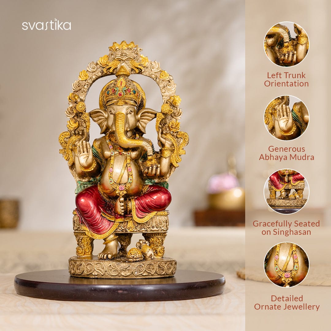 Embrace the divine presence of Lord Ganesha with this Rustic Antique Ganesh Murti with Ganesh Shankh combo, a perfect addition to your pooja space and home decor. The Ganesh Murti , intricately designed in a rustic antique finish, radiates spiritual elegance and positivity. It represents wisdom, prosperity, and remover of obstacles , making it ideal for homes, offices, and sacred spaces. Paired with the beautifully crafted Ganesh Shankh , adorned with intricate carvings of Lord Ganesha, this set enhances the aura of peace and devotion. 🔹 Ganesh Idol Dimensions: Height – 10 inches, Length – 4.5 inches 🔹 Ganesh Shankh Dimensions: 3 inches This divine set is perfect for gifting on auspicious occasions like Diwali, Ganesh Chaturthi, weddings, and housewarming ceremonies . Place it in your temple or workspace to invite good fortune, success, and divine blessings . Note: The stand shown in the image is for photography purposes only and is not included with the idol.