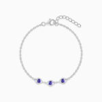 The Inspiration: Zero effort, all elegance. A bracelet that moves with you, from day looks to dinner plans. The Design: This silver bracelet for women features three droplet-shaped motifs. Each has a blue-coloured zircon at the centre. 925 Silver Perfect for sensitive skin Charm: 0.4 cm x 5 cm Length of Chain: 15 cm + 4 cm Adjustable Comes with the Nikrish Jewellery kit and authenticity certificate Content: Bracelet Net Qty- 1 unit Styling Tip: Pair this with a silver ring.