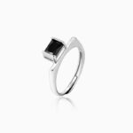 Silver Black Square Ring