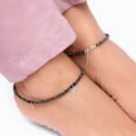 The Inspiration: Step into confidence and let the charm unfold with every stride. It’s not just an accessory, it’s a reflection of your pure and authentic self. The Design: This silver anklet features a black bead design with two butterflies and one flower charm. 925 Silver Perfect for sensitive skin Length of Chain: 26 cm + 3.5 cm Adjustable Motif Height: 1 cm, Width: 1 cm Comes with the Nikrish Jewellery kit and authenticity certificate Content: Anklet Net Qty- Single or pair, as chosen by you! Styling Tip: Wear this anklet with your favourite dress.